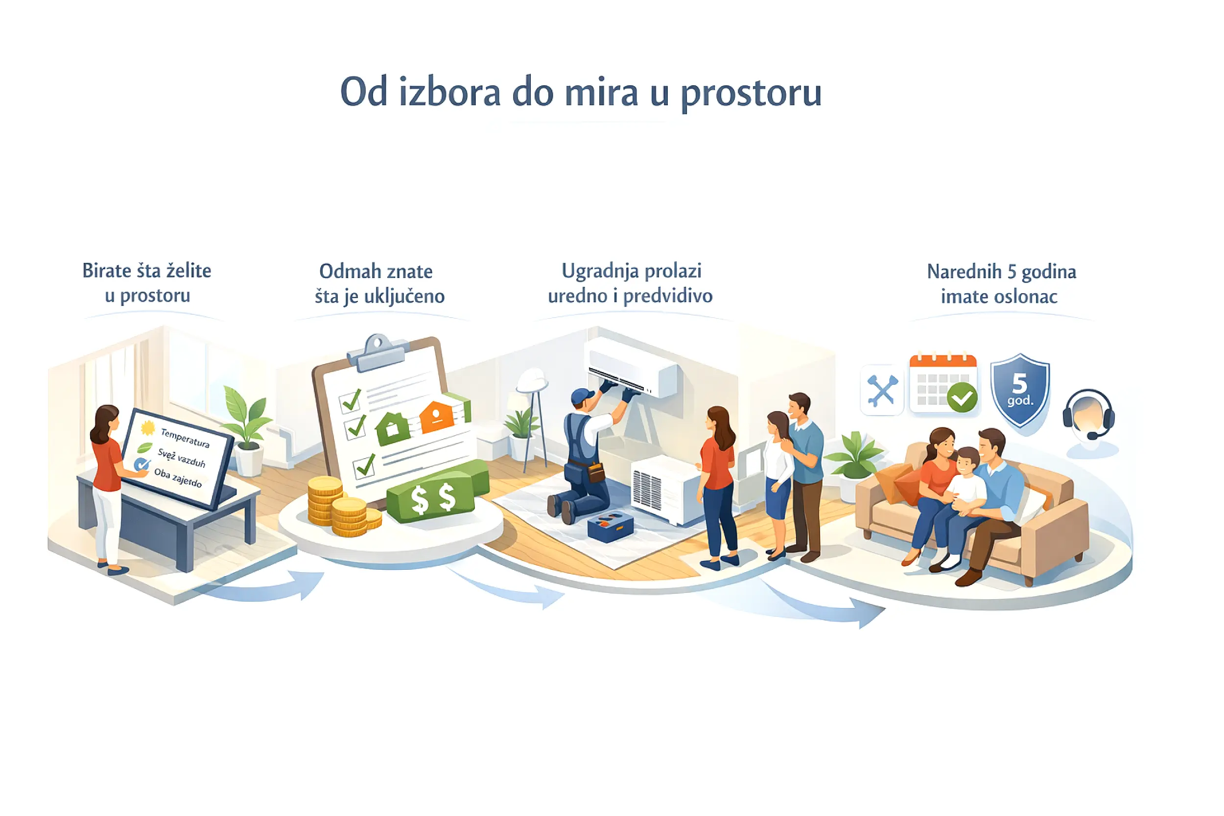 Uživajte u novom komforu svog doma bez prašine, haosa i nepotrebnog gubitka vremena. Naš način rada organizovan je tako da jedina promena u vašem prostoru bude prijatna temperatura ili svež vazduh – dok vaš dom ostaje čist i uredan.